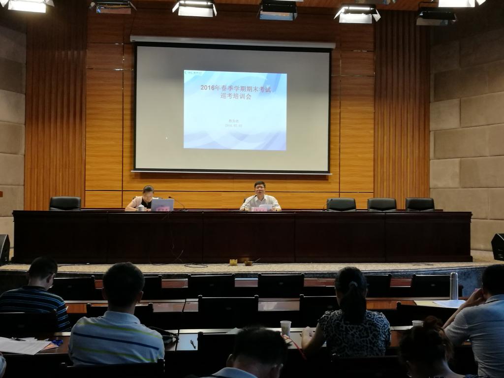 7月7日上午,学校召开2016年7月期末考试巡查工作培训会。全省电大系统抽调的75位考试巡查人员参加会议,会议由教务处处长李正光主持。