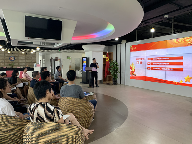 主题党日活动上,党支部书记李正光以《坚决维护核心,践行初心使命》为题给大家上了一堂生动的党课。李正光结合国际国内形势,从坚定维护核心是最紧要的政治、坚定维护核心是最根本的要求、锻造维护核心和对党忠诚的坚定信念三个方面作了阐述,要求党员将维护核心变成思想自觉、变成实际行动,讲规矩守纪律,激发工作热情和创造活力,立足本职工作,以马上就干的作风、敢于担当的精神,推动学校转型升级和内涵发展。支部委员吴永斌以《坚决把“两个维护”落实到行动中》为题作了交流发言。随后,全体人员观看了不忘初心专题视频《为了心底那份育人情怀》和廉政专题视频《隐形26年终落网》。