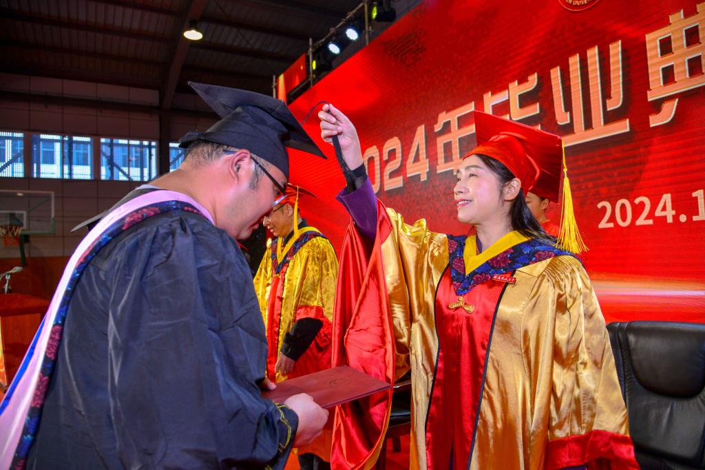 国开学位评定委员会委员和省校导师代表为毕业生颁发学士学位证书