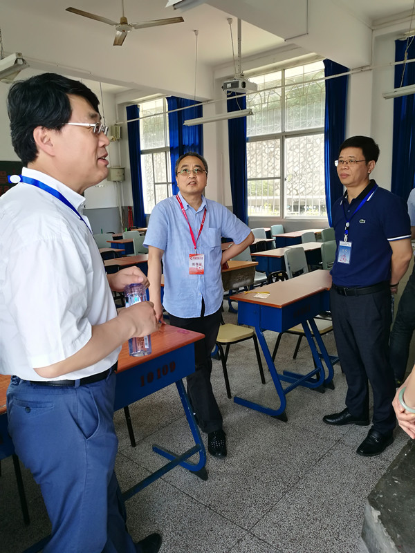 总主考陈展虹、主考李正光和国开巡视员在考场